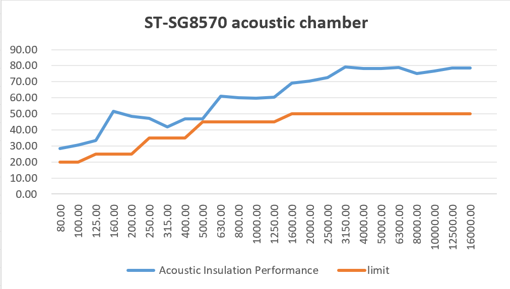 隔音方案:A 计权声压级:外界 80 分贝,背景噪声<30 分贝